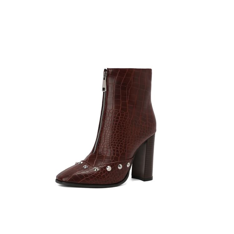 Chunky Toe Boots Pointed Studded Denim Short Heel