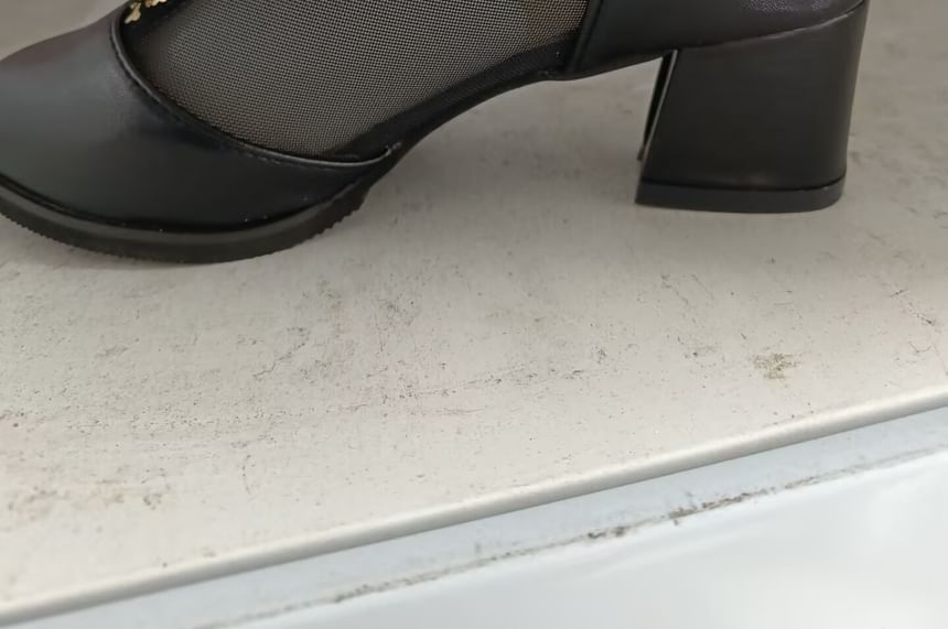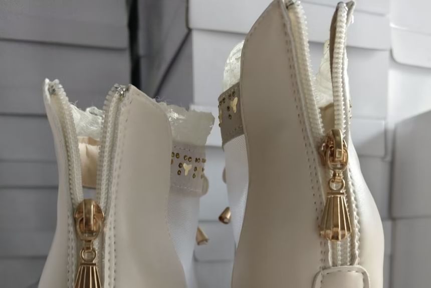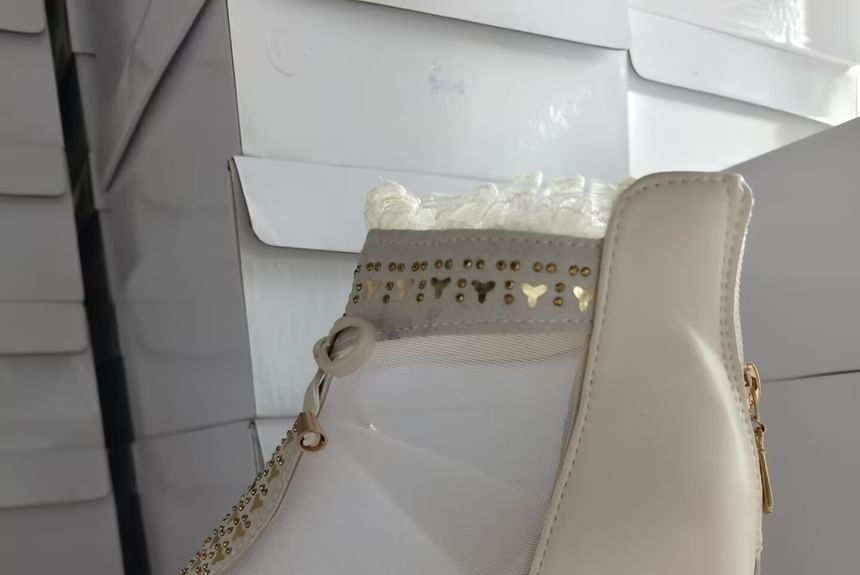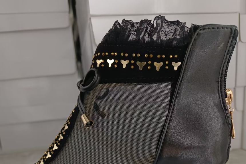 Chunky Trim Boots Lace Ankle Pointed Heel Mesh Panel