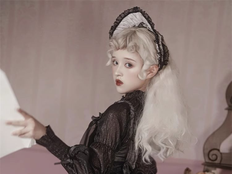 Lolita Cinched Sleeve Stand Collar Plain Bow Ruffle Blouse / Sleeveless Square Neck Floral Print Bow Mesh A-Line Dress / Set