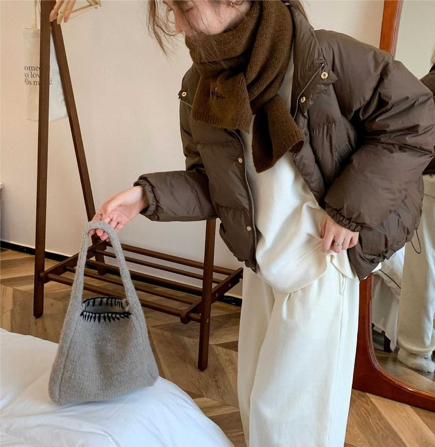 Contrast Stitch Knit Tote Bag