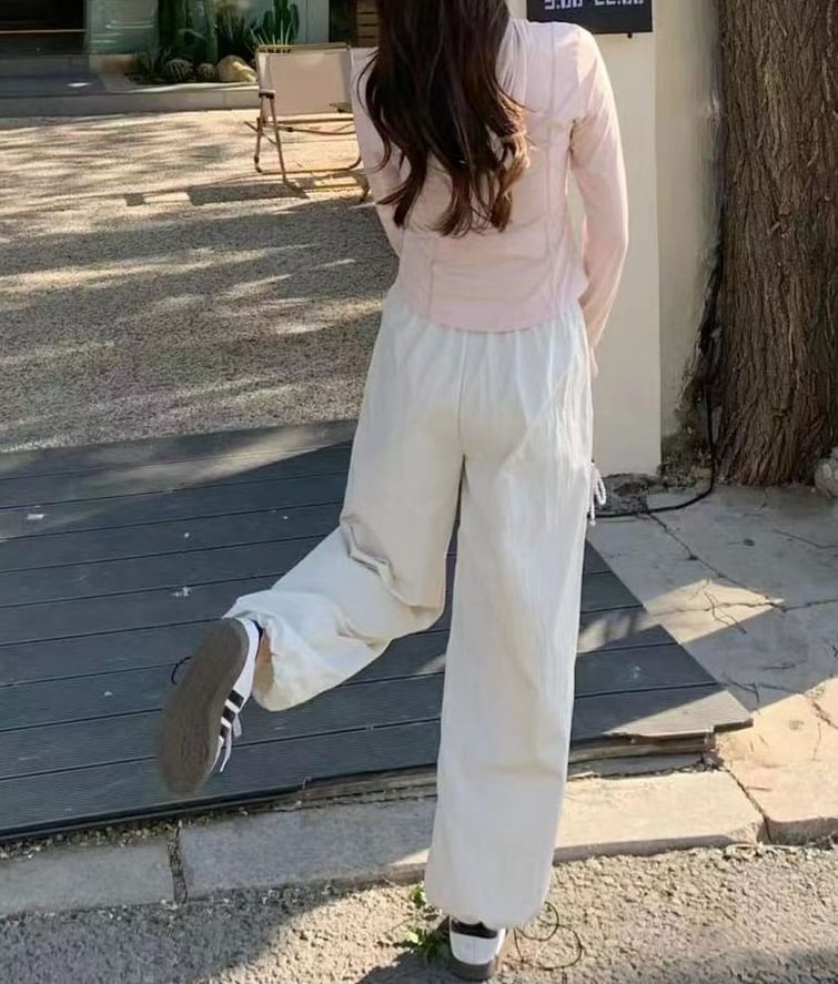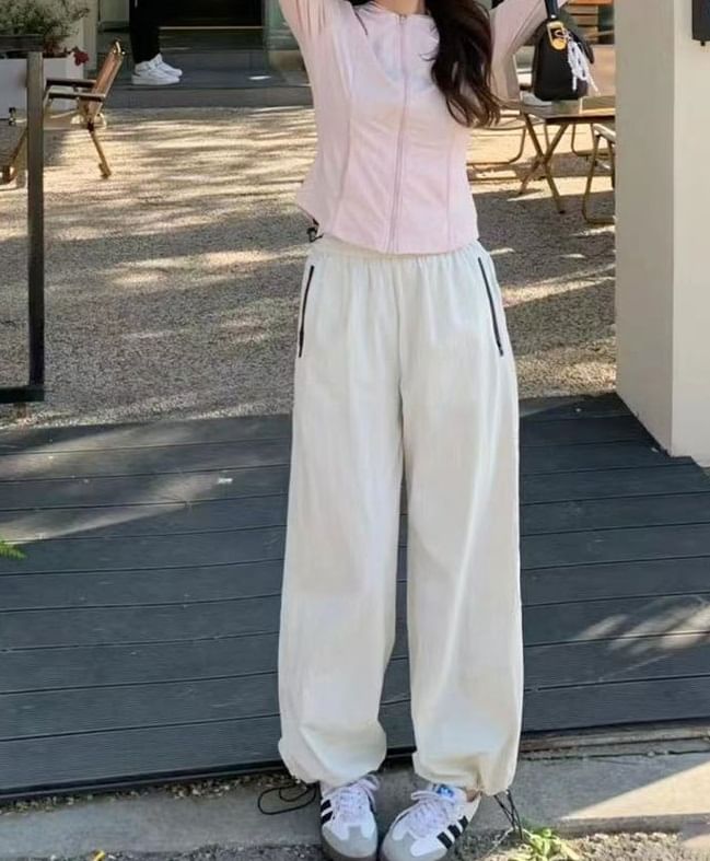 Contrast Zipper Pocket High Waist Drawstring Gather
