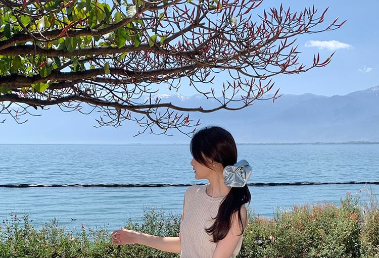 Sleeveless Crew Neck Plain Ribbed Knit Top