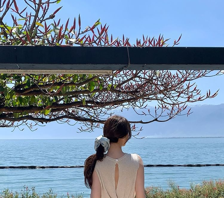 Crew Sleeveless Plain Top Neck Knit Ribbed