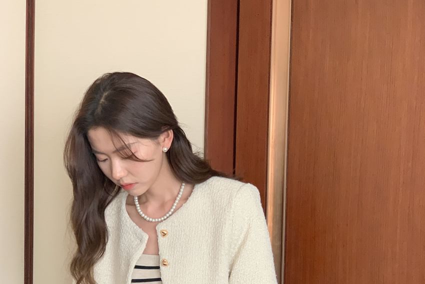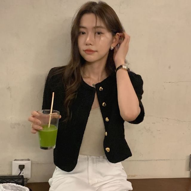 Crewneck Button-Up Tweed Crop Jacket