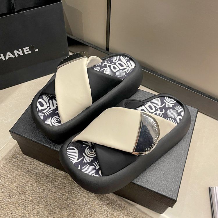 Cross Leather Two Platform Sandals Tone Strap Faux