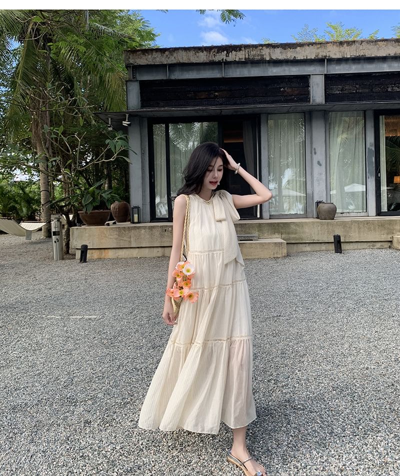 Sleeveless Crewneck Plain Midi A-Line Dress