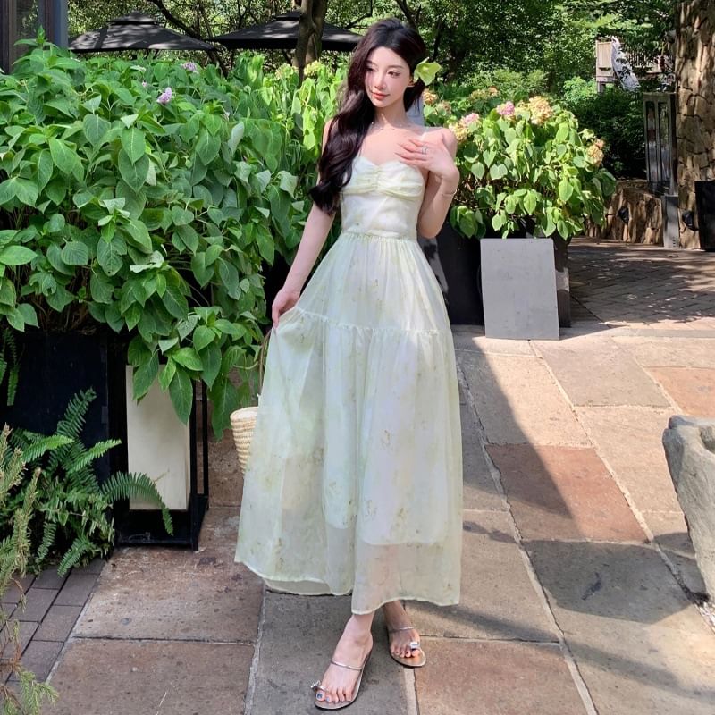 Dress Maxi Up Patterned Strap A-Line Spaghetti Print Lace