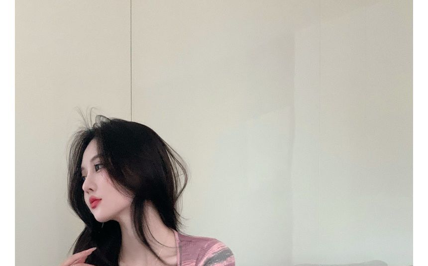 Short-Sleeve Square-Neck Striped Slim-Fit Mini Dress