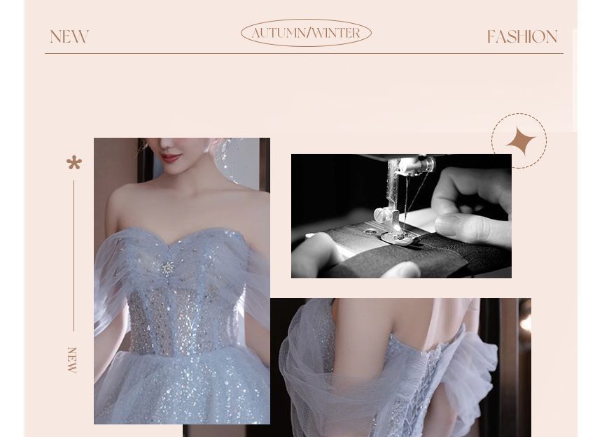 Cold Shoulder Glitter Midi A-Line Evening Gown
