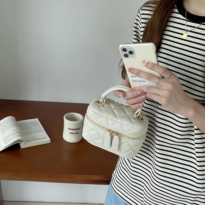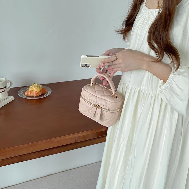 Faux Quilted Bag Crossbody Plain Zip Leather