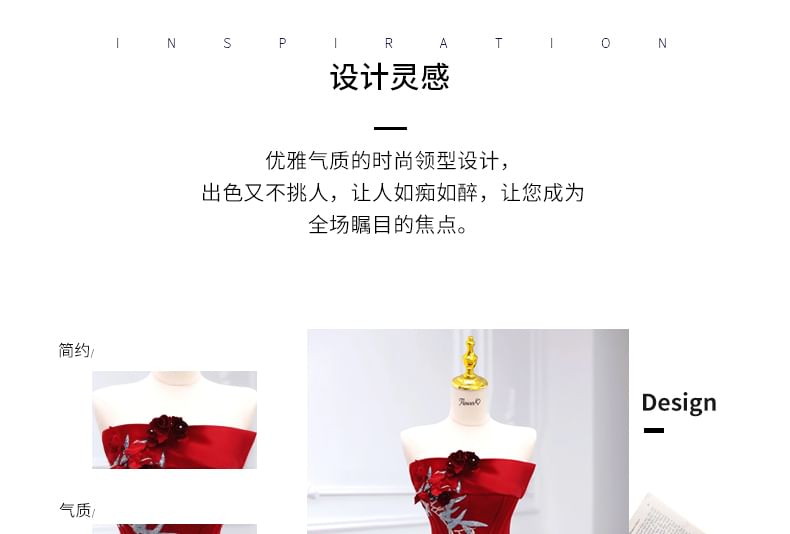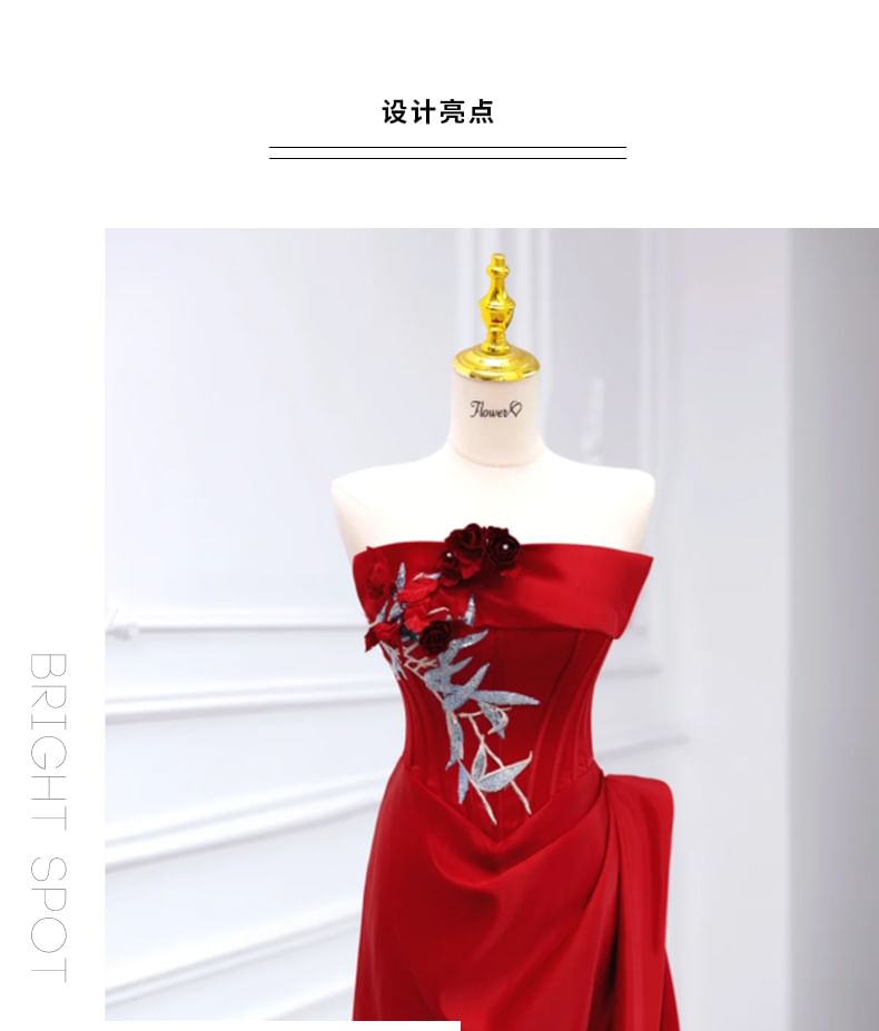 Floral Detail Embroidered Ruched A-Line Tube Evening Gown