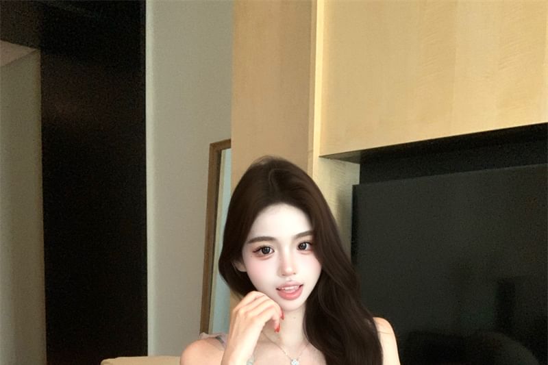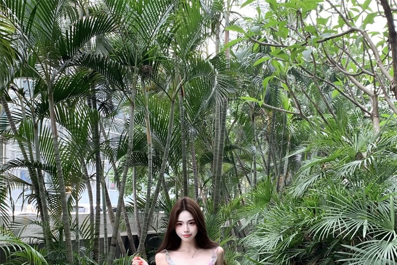 Floral Print A-Line Sleeveless Mini Ruffle Dress V-Neck