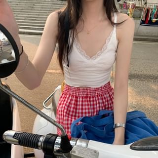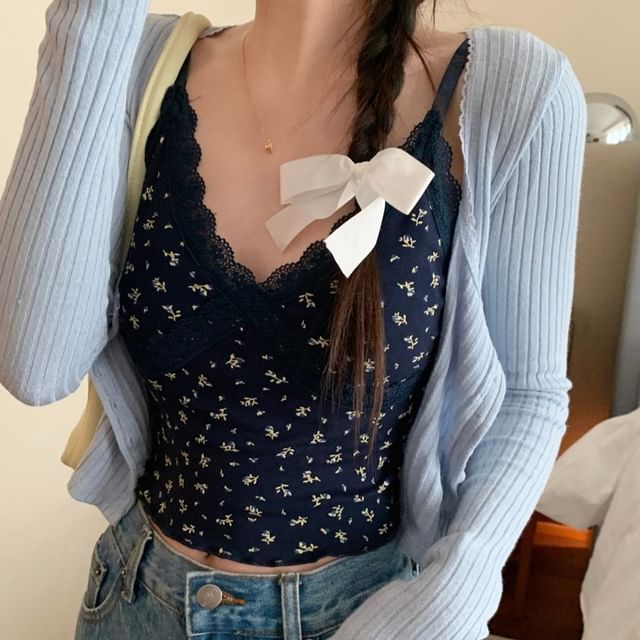 Floral Print Lace Trim Ribbed Camisole Top (Various Designs)