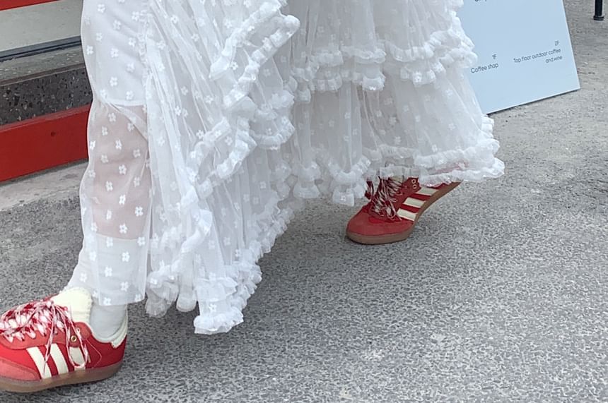 High Rise Floral Ruffle Asymmetrical Maxi A-Line Skirt