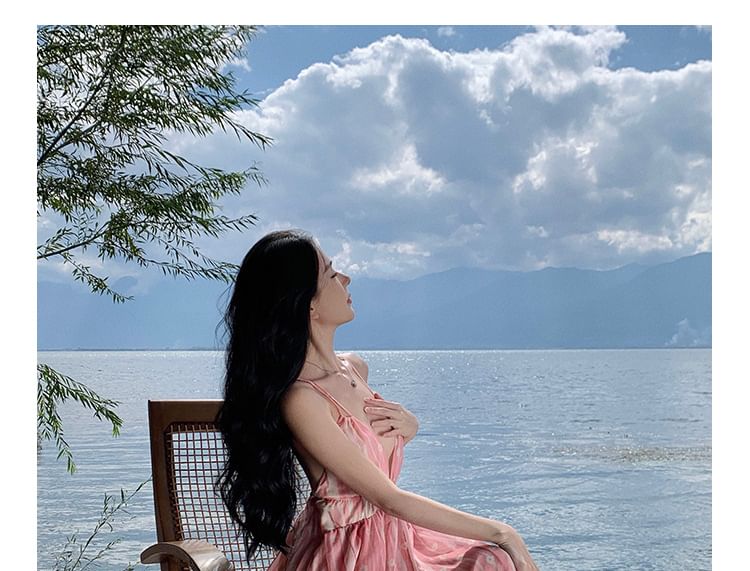 Floral Strap Dress Spaghetti Print Maxi V-Neck A-Line