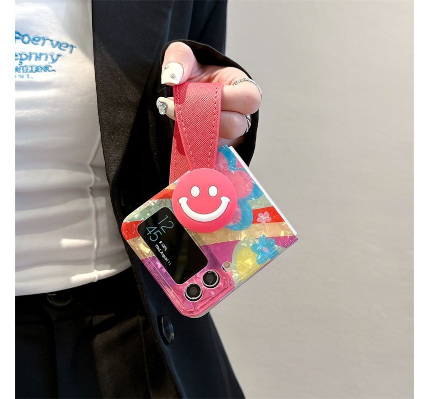 Flower Smiley Face Mobile Phone Case With Hand Strap