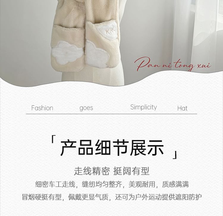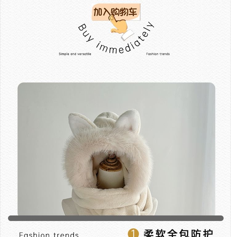 Fox Ear Faux Fur Hooded Scarf with Mitts