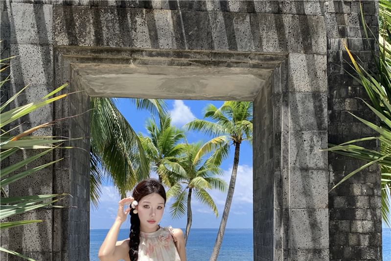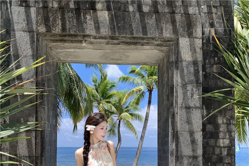 Sleeveless Halter Floral Tiered Midi A-Line Sundress