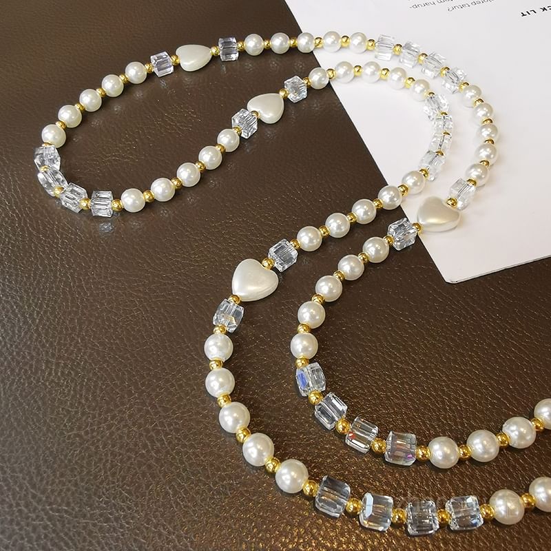 Heart Faux Crystal Phone Lanyard with Lanyard Pad