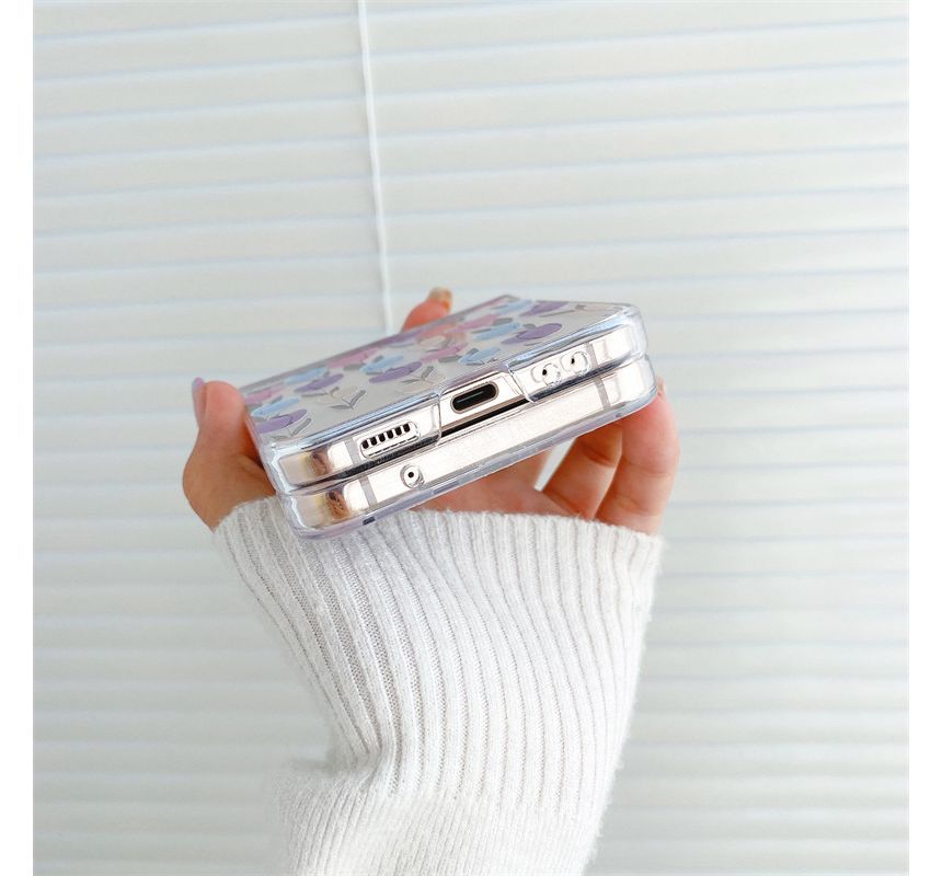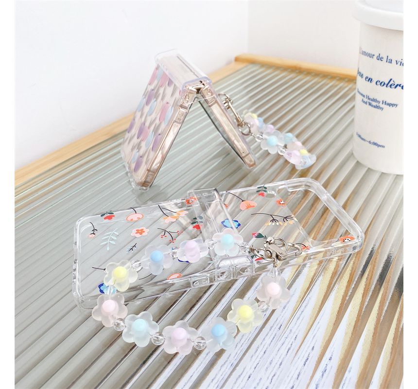 Heart Print / Flower Print with Chain Mobile Phone Case- Samsung Galaxy Z Flip 3 / Flip 4