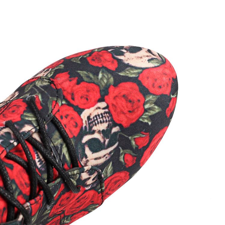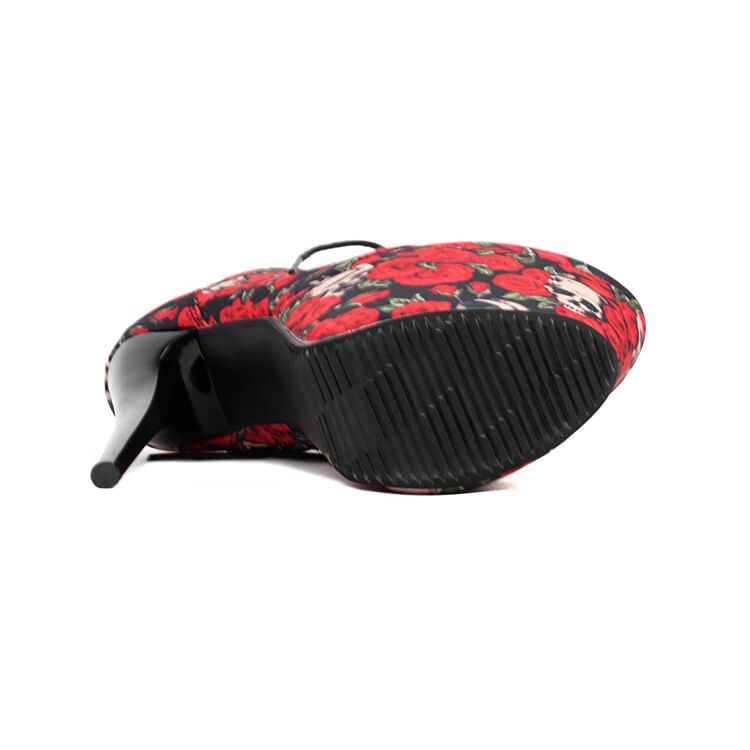 Heel Ankle Floral Stiletto Boots Lace-Up Platform