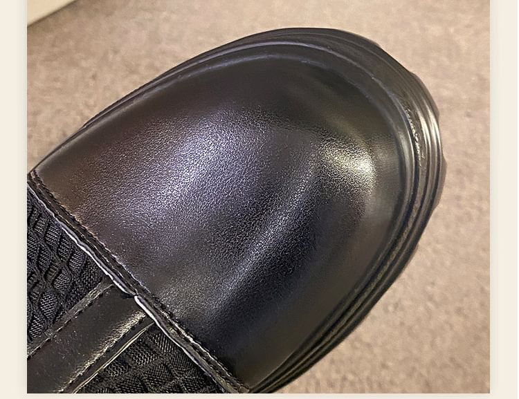 Buckled Mesh Panel Platform Chunky Heel Short Boots