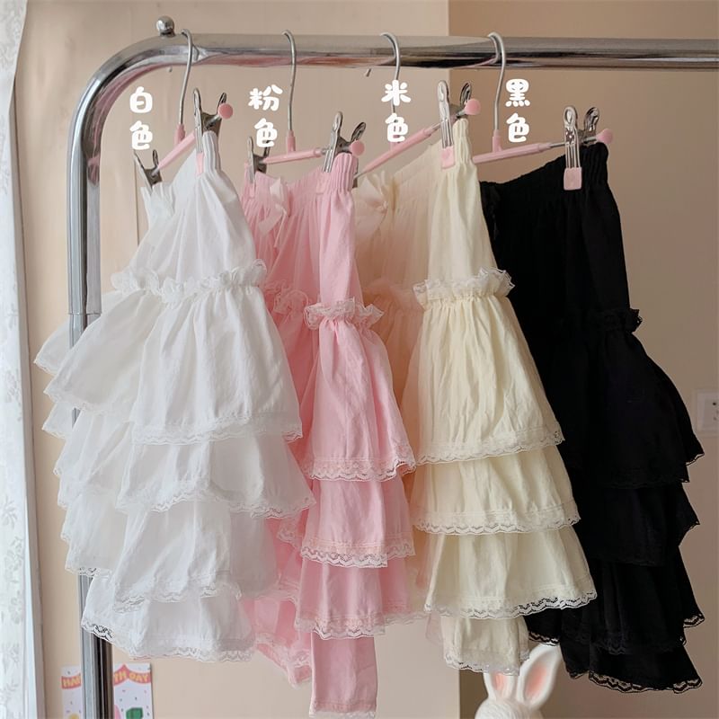 High Waist Plain Bow Accent Lace Trim Layered A-Line Skort