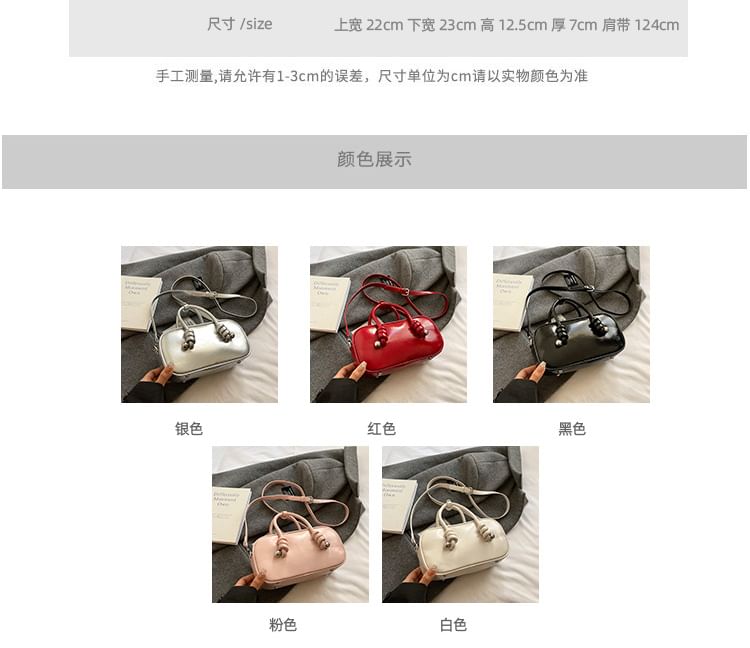 Top Handle Plain Faux Leather Crossbody Bag
