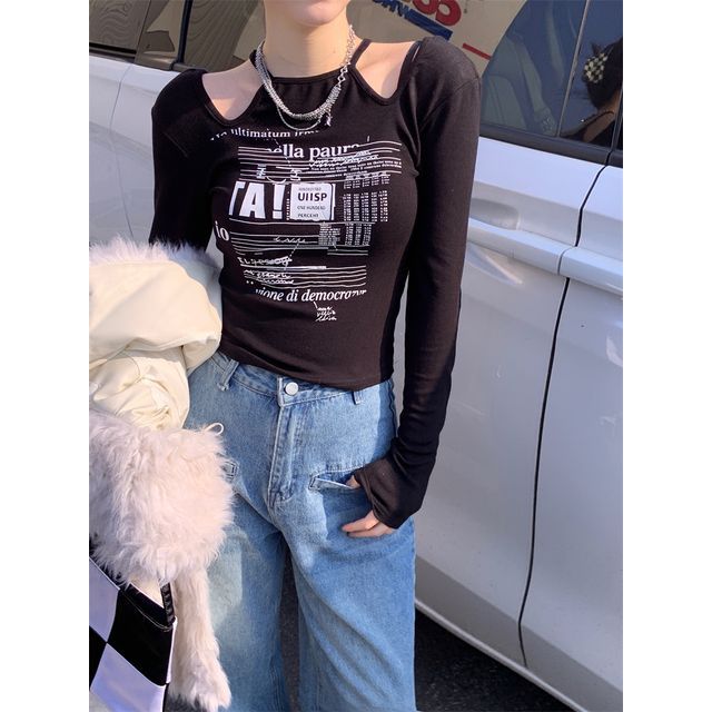 Long-Sleeve Cold-Shoulder Top Slim-Fit Print
