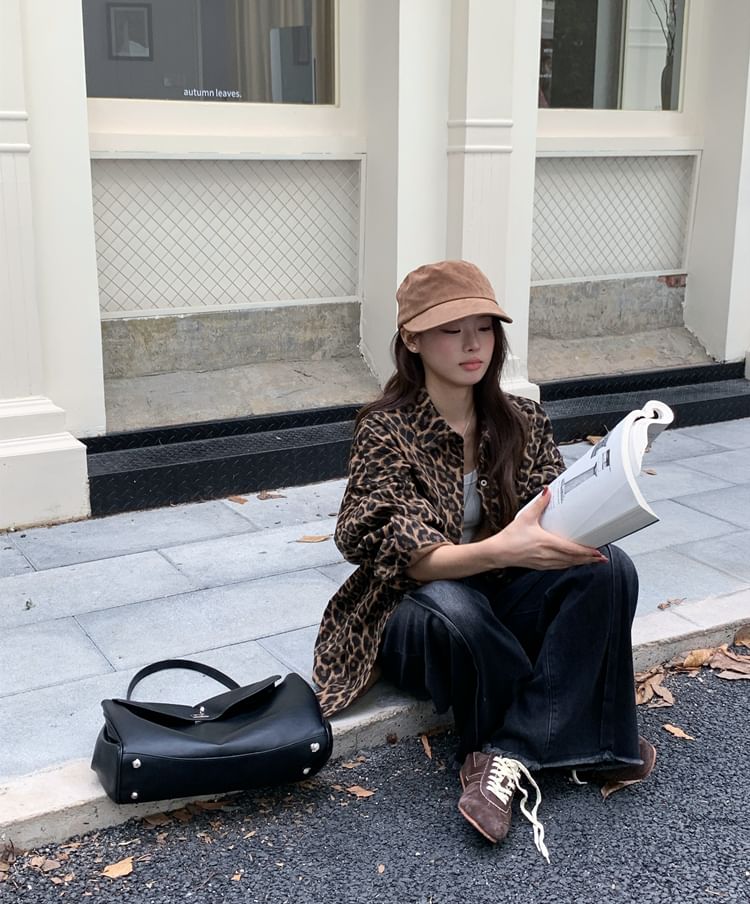 Long Sleeve Collared Leopard Print Button Up Shirt