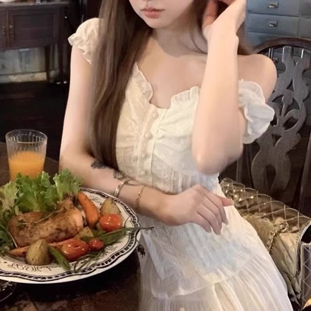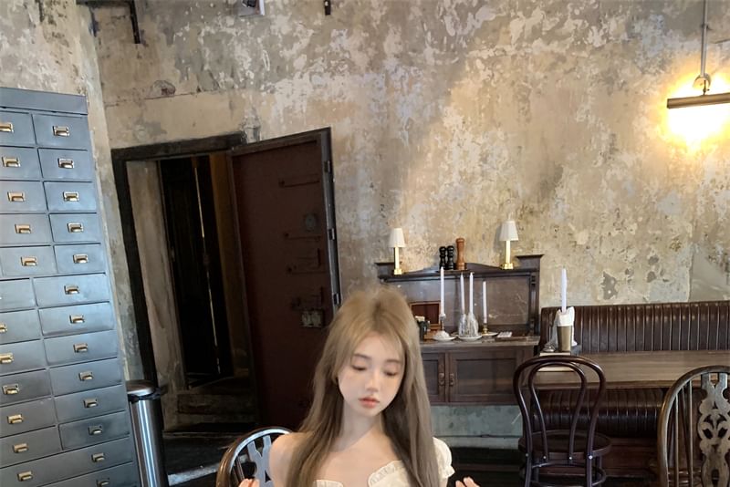 / Mini A-Line Panel Skirt Fit High Short-Sleeve Waist Blouse Lace Slim