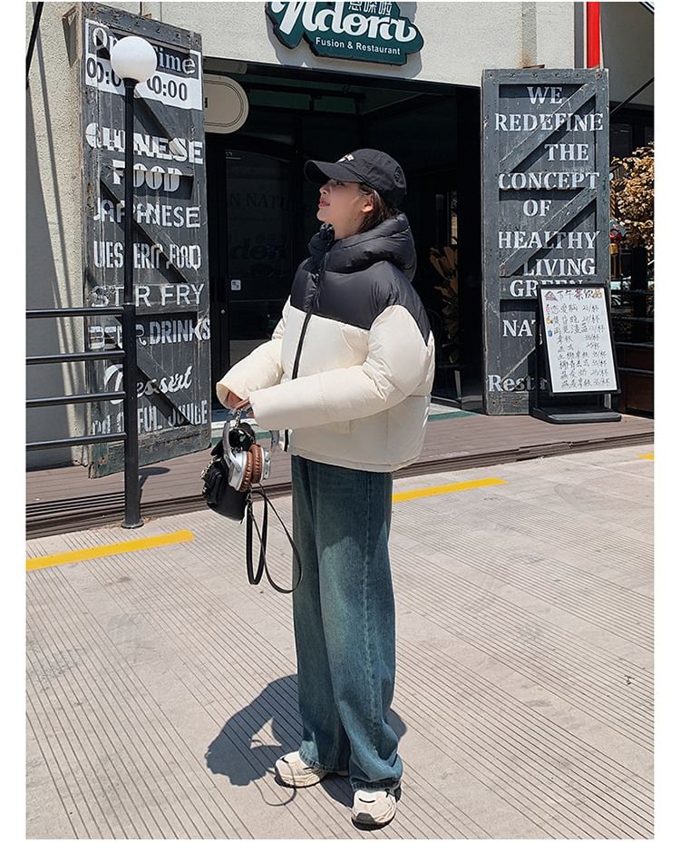 Mock Neck Two Tone Zip-Up Puffer Jacket