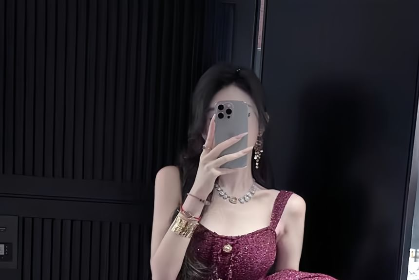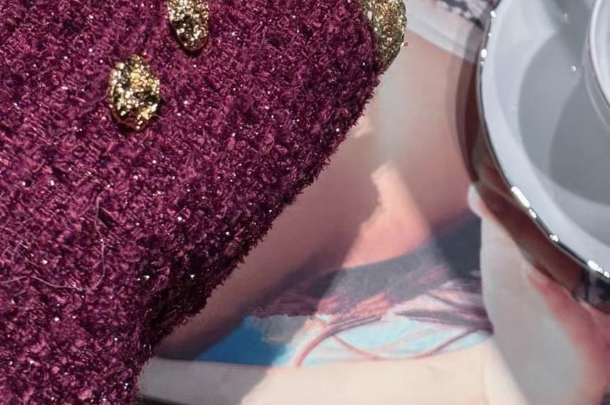 Button-Up Tweed Jacket / Spaghetti Strap Mini Bodycon Dress