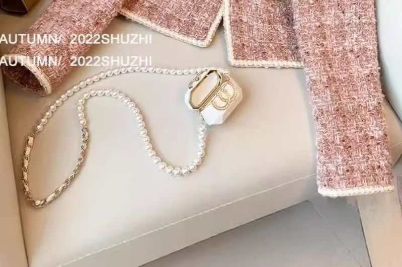 Crew Neck Contrast Trim Open Front Tweed Crop Jacket