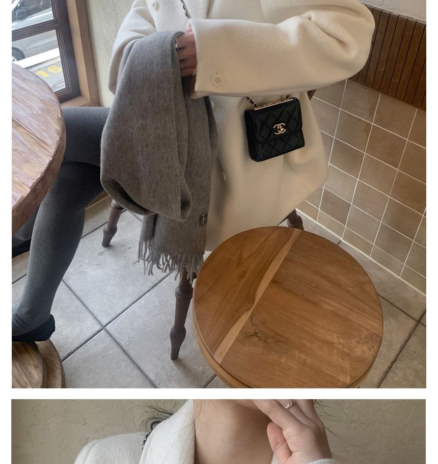 Lapel Collar Plain Double-Breasted Wool Coat