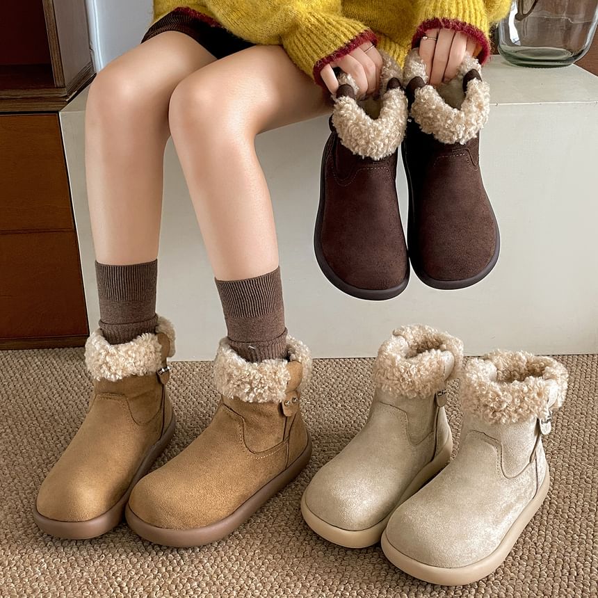 Platform Fleece Panel Faux Suede Short Snow Boots