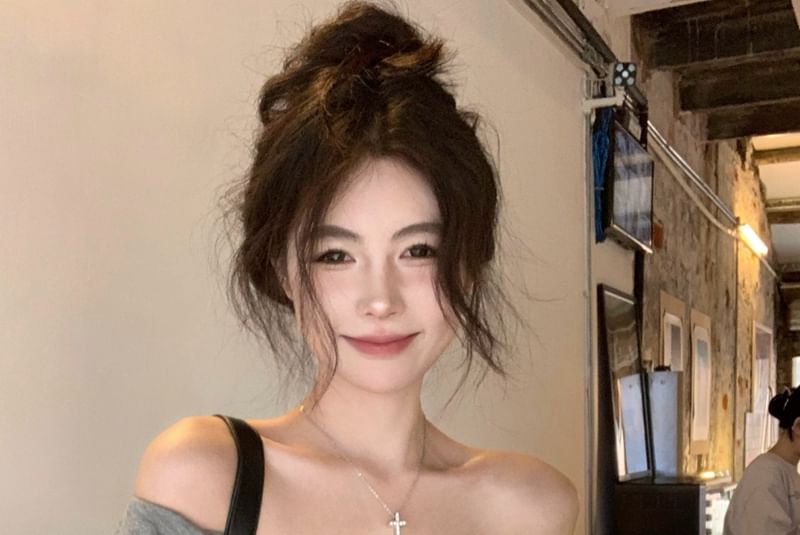 Off Shoulder Plain Twist T-Shirt