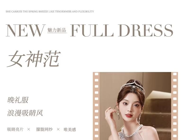 Pearl Floral Gown Neck Round Evening Mesh Faux A-Line Patterned Sleeveless