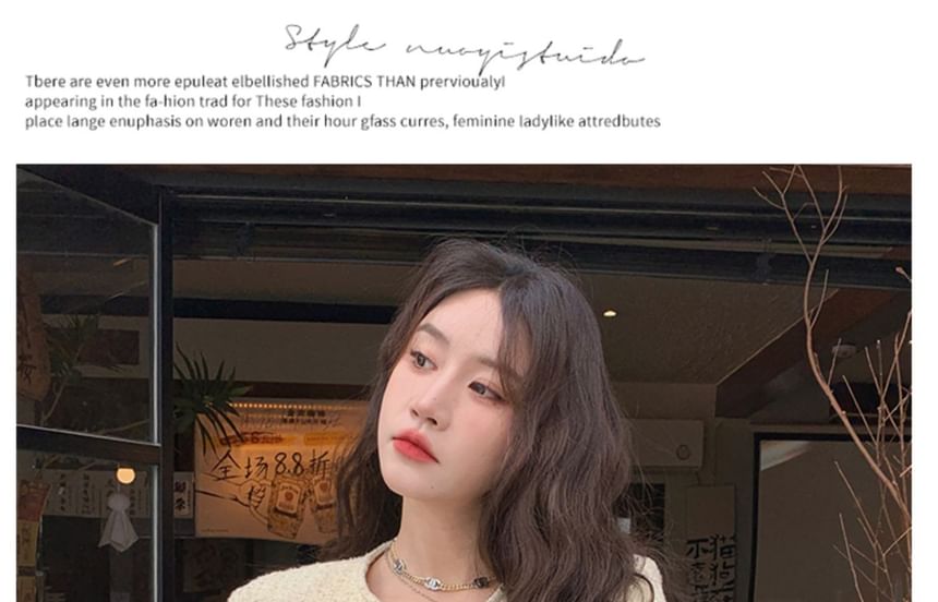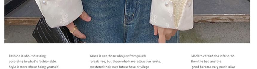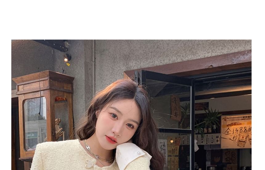 Plain Applique Tweed Single-Breasted Jacket