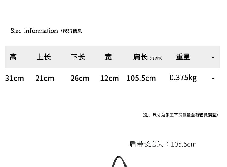 | Upper Length | Bottom Length | Height | Width | Strap Length |