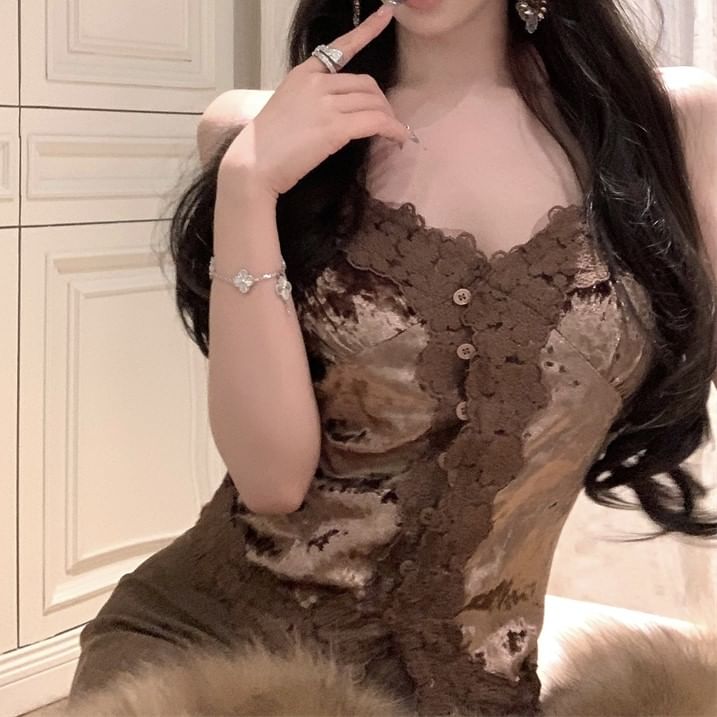 Frill Trim Plain Corp Cami Top