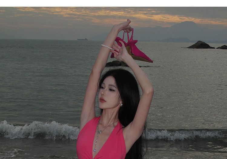 Plain Neck Midi Dress Halter Cutout Bodycon