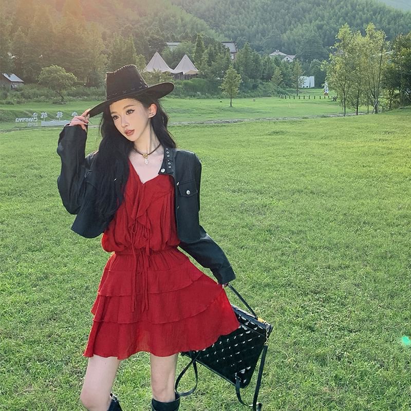 | Color: | Set Of 2 - Blouse & Skirt - Red |