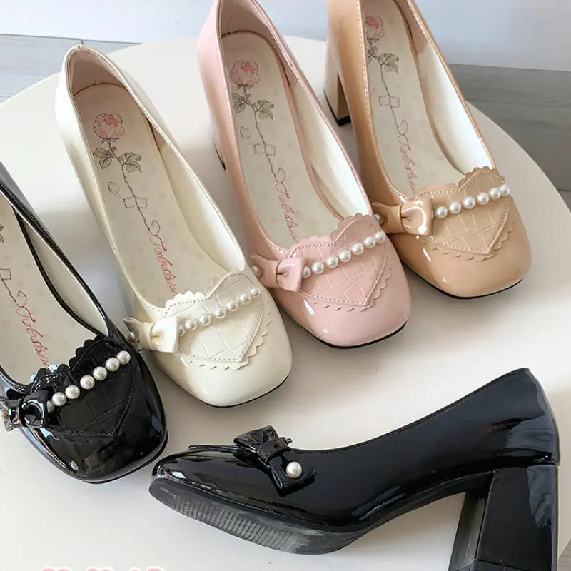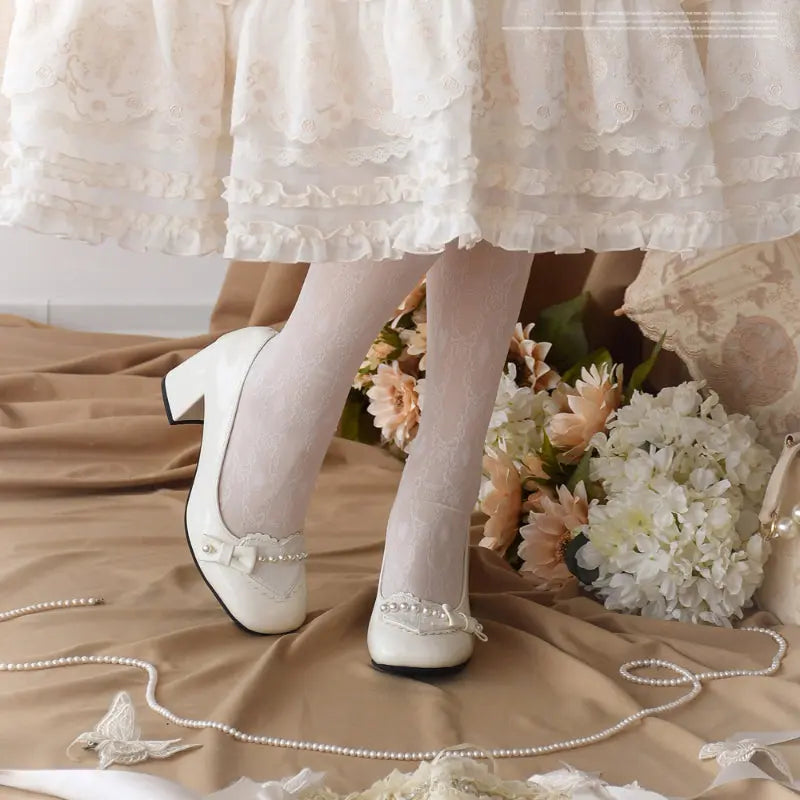 Preorder Pearl Bow Lolita High Heels - Kimi