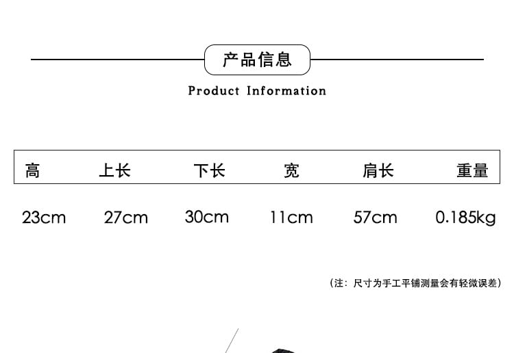 | Height | Upper Length | Bottom Length | Width | Strap Length |