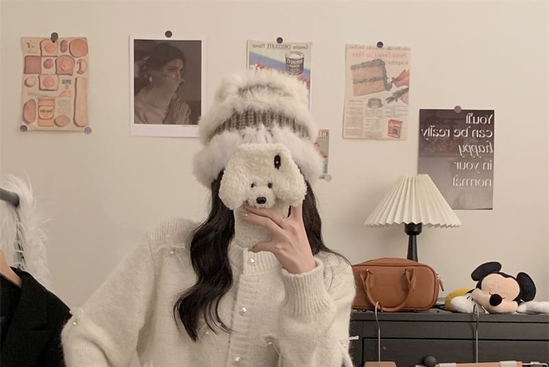 Round Neck Bow Faux Pearl Button Cardigan / High Rise Tweed Mini A-Line Skirt