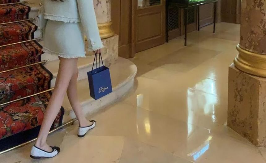 Round Neck Plain Fringed Tweed Button Jacket