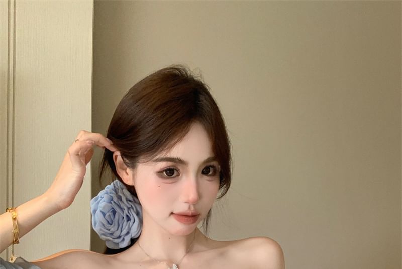 Ruffle Blouse Plain Puff-Sleeve Rhinestone Off-Shoulder