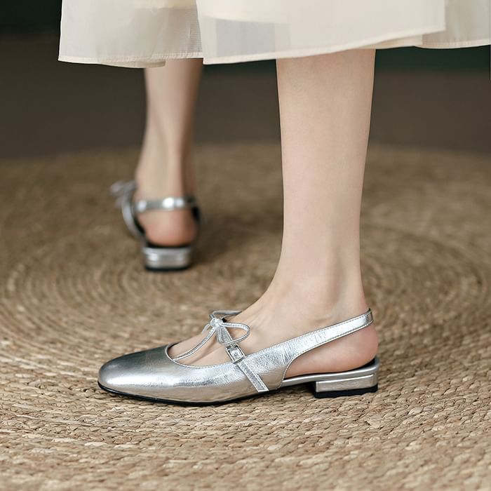 Sandals Bow Slingback Chunky Heel