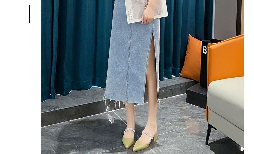 Rhinestone Chunky Heel Slide Sandals
